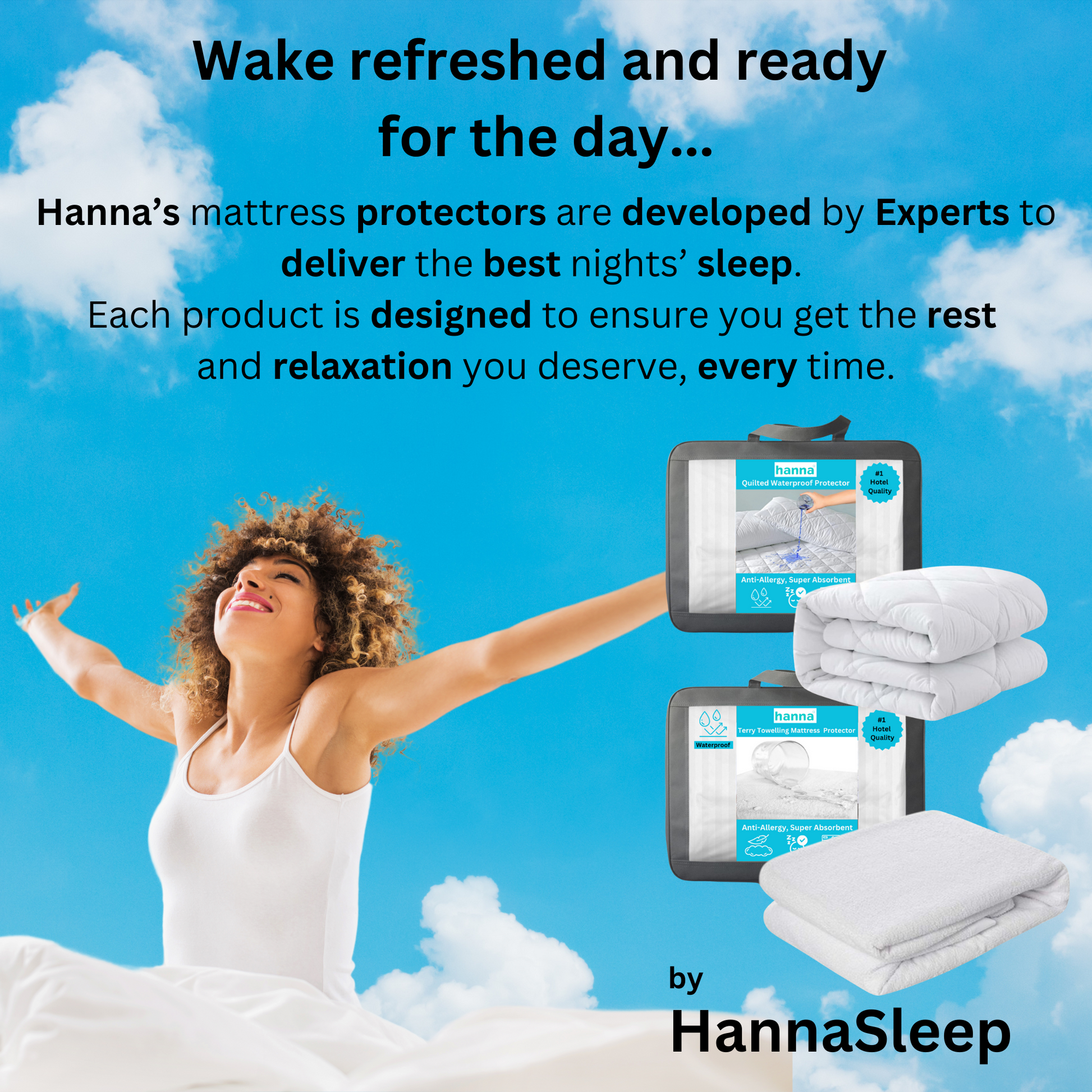 Designed for ultimate peace of mind, the protector provides 100% waterproof protection, shielding your mattress and Hanna Toppers from spills, stains, and accidents. The super-absorbent yet non-noisy Terry Towel material ensures a quiet, undisturbed sleep, while the anti-allergy properties help to keep dust mites, allergens, and bed bugs at bay.