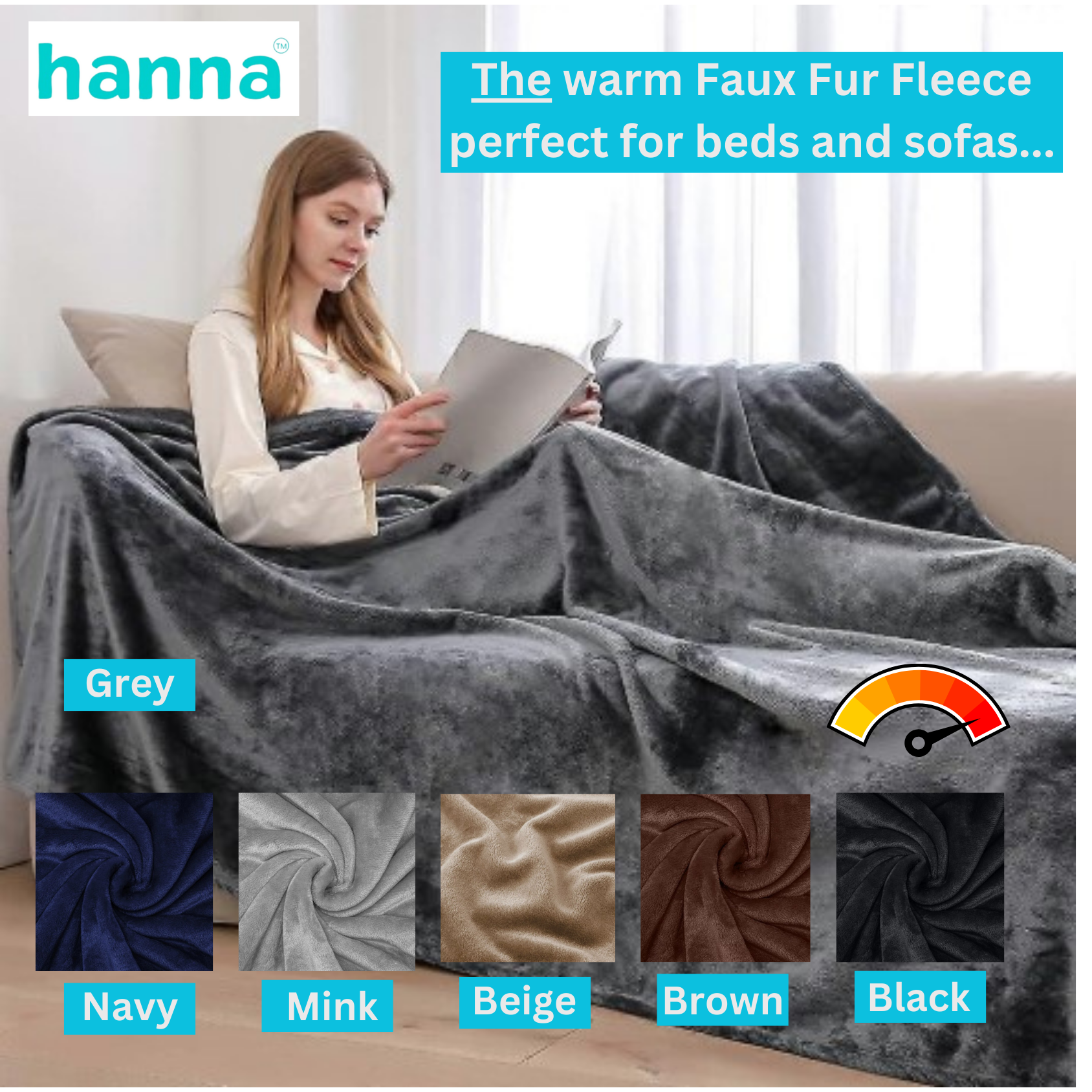Hanna's Luxury Faux Fur Fleece Reversible Throw